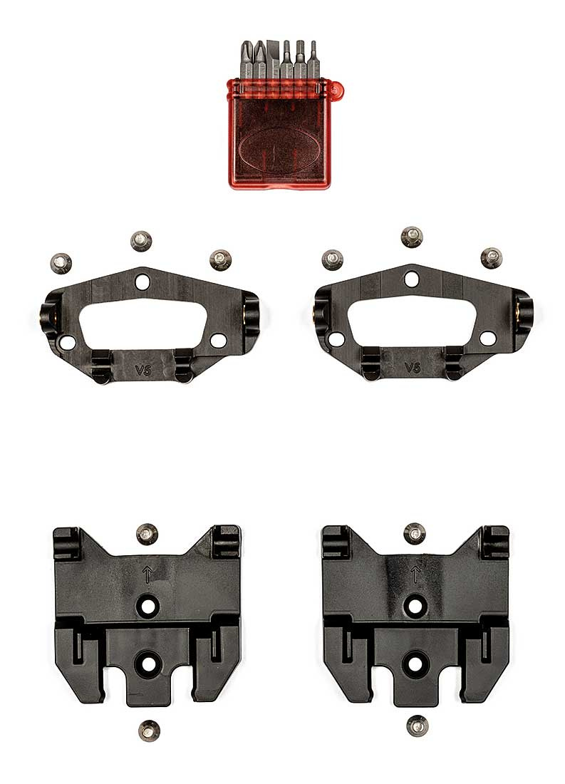 - In the Box: Bindings, Tesla touring brackets, T1 heel rests, mounting screws, and Spark pocket tool.