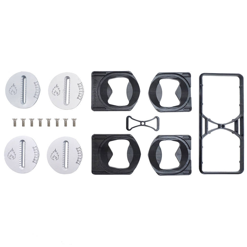 All the same great features of our Spark Pucks, but with 3° canting for reduced knee strain. Near infinite adjustability for splitboards with inserts. Quick mounting with super fine foot placement, angle, and toe/heel centering adjustments.