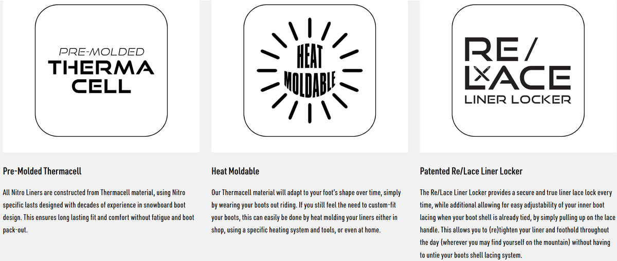 The Cloud 6 Liner provides a more flexible alternative to the 9 and 10 models, while maintaining the proven classic Nitro fit, heel lock and comfort. Our most versatile liner, preferred by riders looking for that extra bit of board feel.