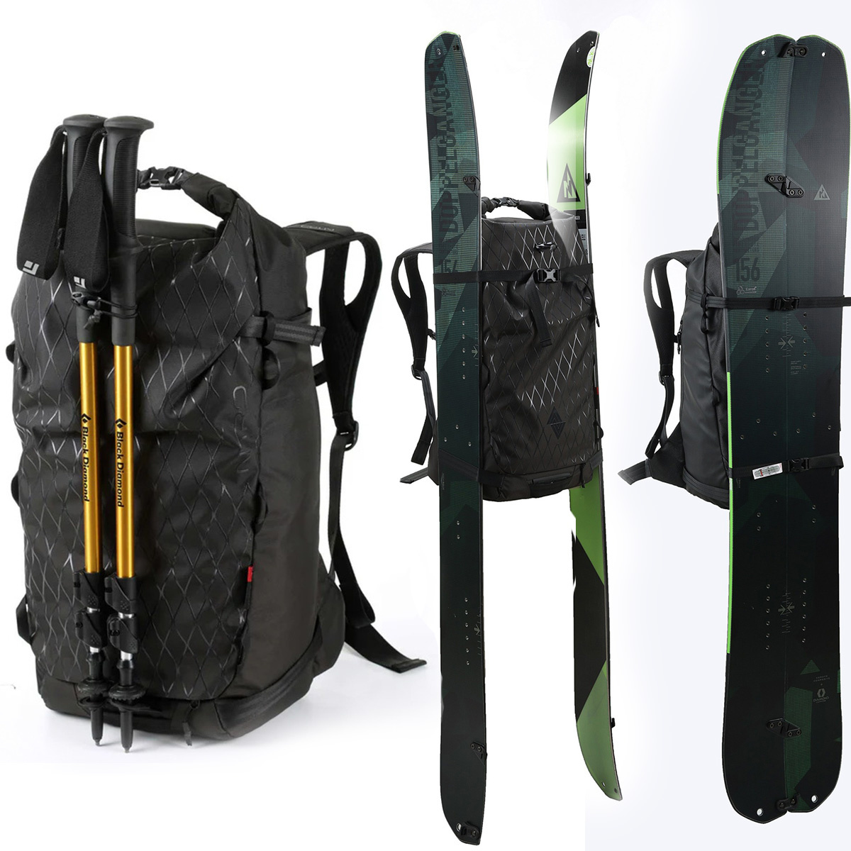 Especifically designed for backcountry splitboarding, minimalist yet multi- functional and variable in size.The main compartment can be expanded from 22-30L by its roll-top closure. A large, double zipper backpanel access lets you quickly get to all your gear, even if stuffed at the very bottom of your bag.