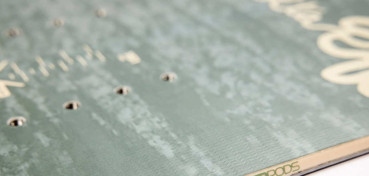 Power Pods – Extended width under the bindings provides additional edge control and board turning performance. The extra width under the bindings toe and hell edge eliminate toe and heel drag while offering exceptional control and natural board feel.