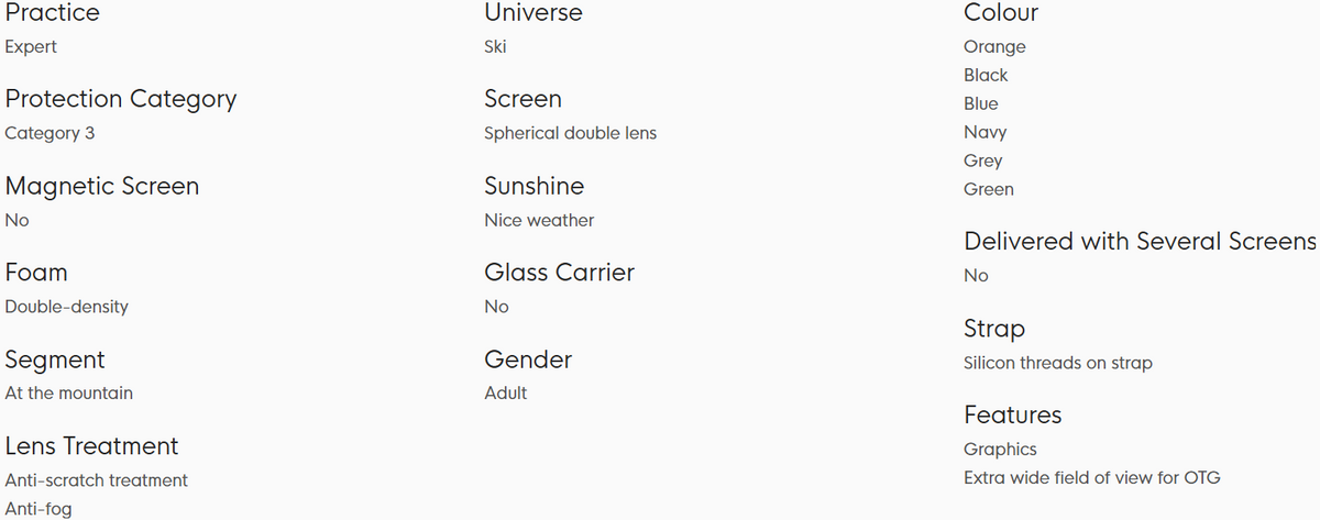 Experience great visual comfort with the ATHOS ski mask | ATHOS stands out for its main features. Offered in category 3 or category 1, this ski mask adapts to your needs and skiing conditions. It features a high-quality spherical lens that provides an unmatched panoramic view, allowing you to fully appreciate the beauty of the mountain while keeping an eye on your path.It benefits from anti-fog and anti-scratch treatment, ensuring clear and sharp vision even in the most challenging conditions. This ski mask provides optimal protection against the elements, allowing you to ski with confidence.Its ergonomic design ensures a perfect fit, minimising pressure on the face and maximising comfort for full days on the slopes.Contemporary and bold graphics add a touch of style to this ski mask, allowing you to express your personality on the slopes.