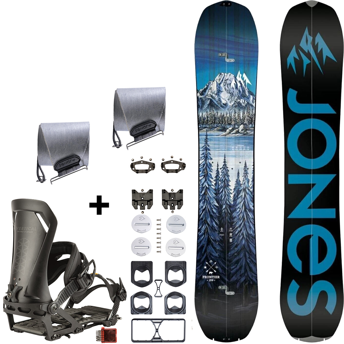 JONES Frontier Tech 2.0 Split & POMOCA Pre-Cut Nomad + NITRO Vertical ST & pucks x SPARK R&D | splitboard & foki + wiązania & pucki