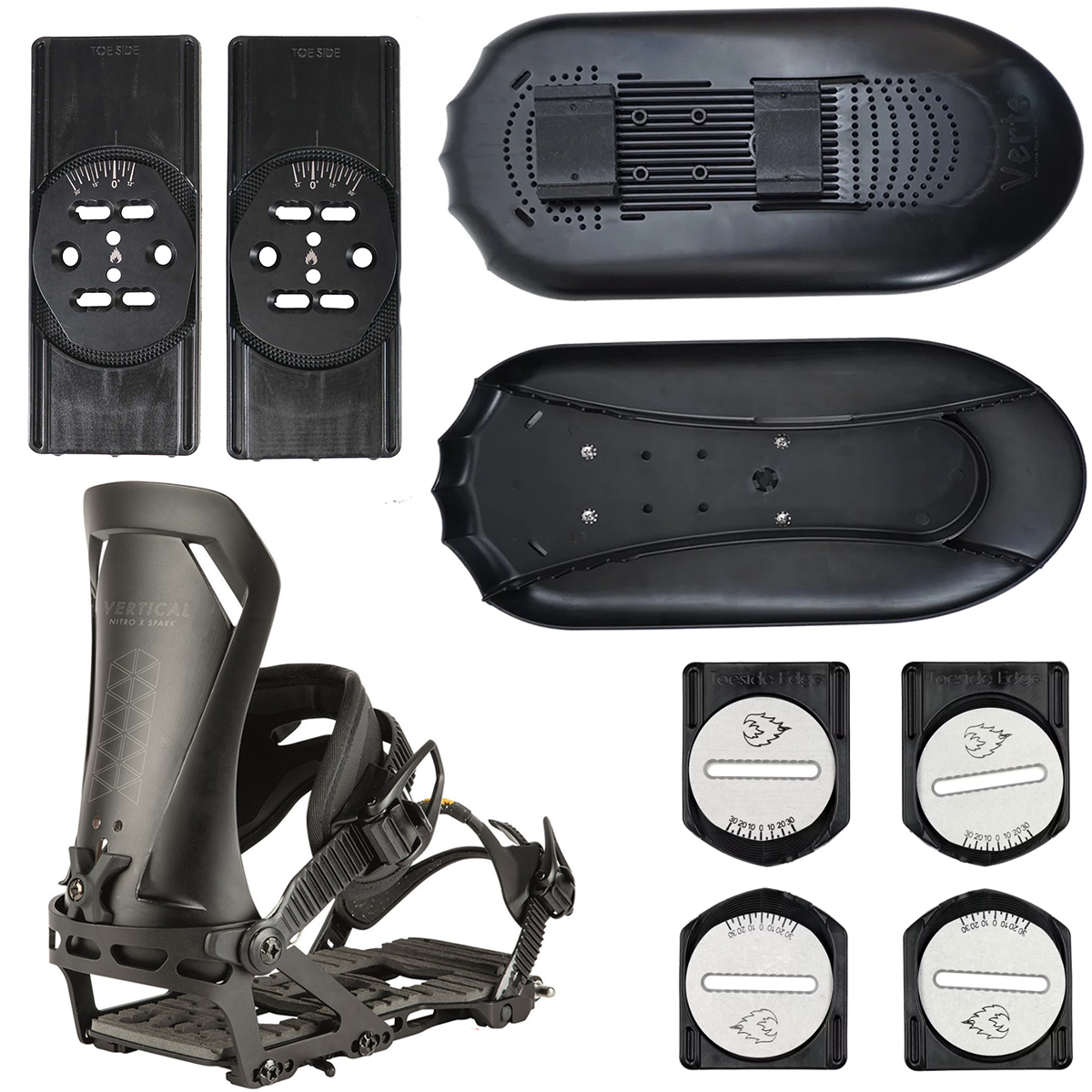 All the same great features of our Spark Pucks, but with 3° canting for reduced knee strain. Near infinite adjustability for splitboards with inserts. Quick mounting with super fine foot placement, angle, and toe/heel centering adjustments.