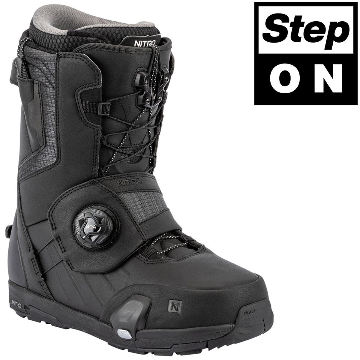Introducing the Nitro Step On® snowboard binding, designed for riders looking for an easy-in, easy-out convenience system without sacrificing performance or control. Three connecting points on the toe and heel provide a strap-like feel and response while making Step On® the most natural and comfortable ride to date. Foothold, board control, and speed are paired with the simplicity and convenience of Step On®, now available from your trusted Nitro dealer.COMFORT: 9/10